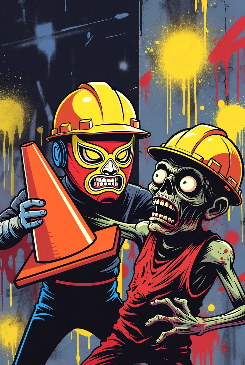 | current | 06:32, 20 March 2026 | 784 × 1,168 (413 KB) | Downtothelast (talk | contribs) | Dttl facing down a zombie to get his traffic cone back. |