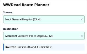 | Route Planner | Navigate the ruins of Malton with purpose. This route planner lets you chart efficient paths between locations, helping you conserve AP, and move through the city with confidence. | https://xunoaib.github.io/wwdead-routefinder | Xikkub | |